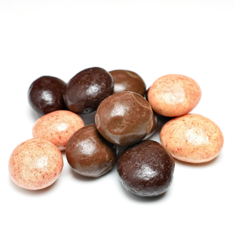 Graines de Sacha Inchi enrobées de chocolat noir, chocolat au lait ou chocolat blanc. Aucun agent de conservation n’est utilisé.